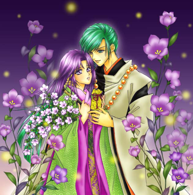 一日中、自分が独占できた事を、何より喜んでいる様子です。 普段は感性豊かな永泉様と、論理的な泰明殿ですが、あえて逆に描いてみました。
