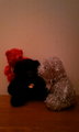 本日、思いがけず赤のチビくまちゃんを頂いてしまったので、勢いで一回り大きいサイズの銀くまちゃんと黒くまちゃんを購入してしまい…。 銀くまちゃん = 旦那様 黒くまちゃん = 奥様 赤くまちゃん = 子わんこ で。(配色は自分の第一印象ですので、皆様はお好きなバリエーションでお楽しみ下さい♪) 桜の木の下ならぬオンシジュームの下でラブラブご夫婦v |