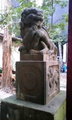 | >手前の竹筒に耳を当てると雫の音が反響した金属的な綺麗な音が聞こえます。 水琴窟みたいなものでありましょうか? ピユュ〜ンッ って感じの音がするですよ。 しかし、毎度せお様ナイスな場所を見つけられます〜。 狛犬さんが可愛いですよ。 「いやぁんっ放して〜」 みたいな(笑) |