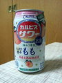 | >アルコホルの入ってない「カルピス桃」はすっげー旨いです。 この原液(濃いめ)をアルコールで割れば美味しいのでは? ほら、以前やった攻めカクテル(ハチミツorメープルシロップ)の時みたいに。 どうでしょう? |