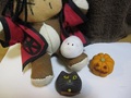 | かぼちゃと猫は生菓子なのに、子わんこのお膝のユーレイだけお饅頭なんだよ。 旦那、作ってて「いや・・・これは饅頭だろう!?」とかなっちゃったんだと思うんだ。 ホントに手を抜けない奴。 |