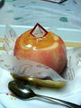 keiさんに、こんなものをご馳走になりました。 こう見えてね、桃のジャムの下に隠れてるのは、ゼリーとかじゃなくてカスタードクリームなんだよ! 予想外にこれが合うんだよ。美味しいんだよ! 旦那様が「しまった!カロリーがー!」って、拳握り締めるよー!(笑 でもでも、外身のお桃を食べ終わる頃には、なんだかお桃だけ食べてたような気分になるよ。 しかも、気が付いたら手づかみになってる。 シン、肉球の間の毛にお桃の果汁が染みこんじゃって、なんかいつまでもお手手が甘いんだよー! ぺろぺろ。 ちなみに、飲み物は巨峰カルピスでしたv |